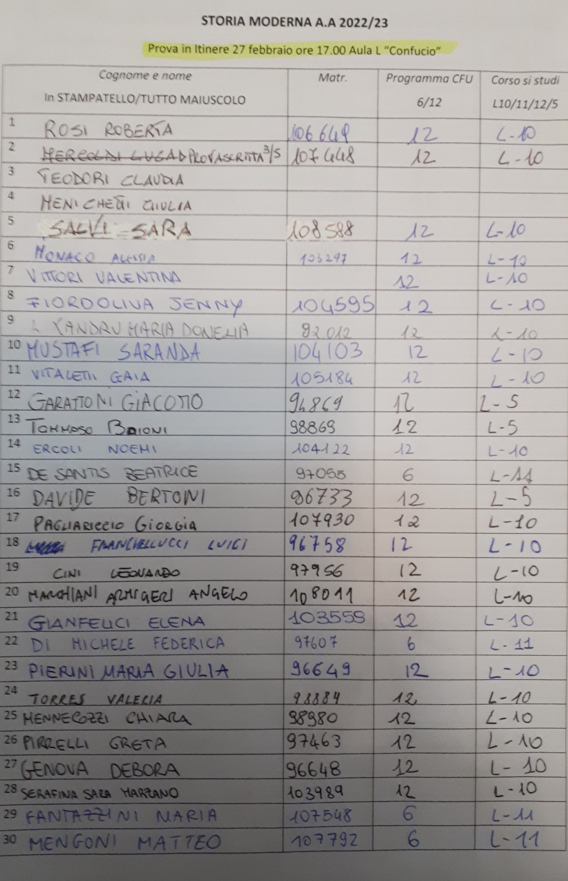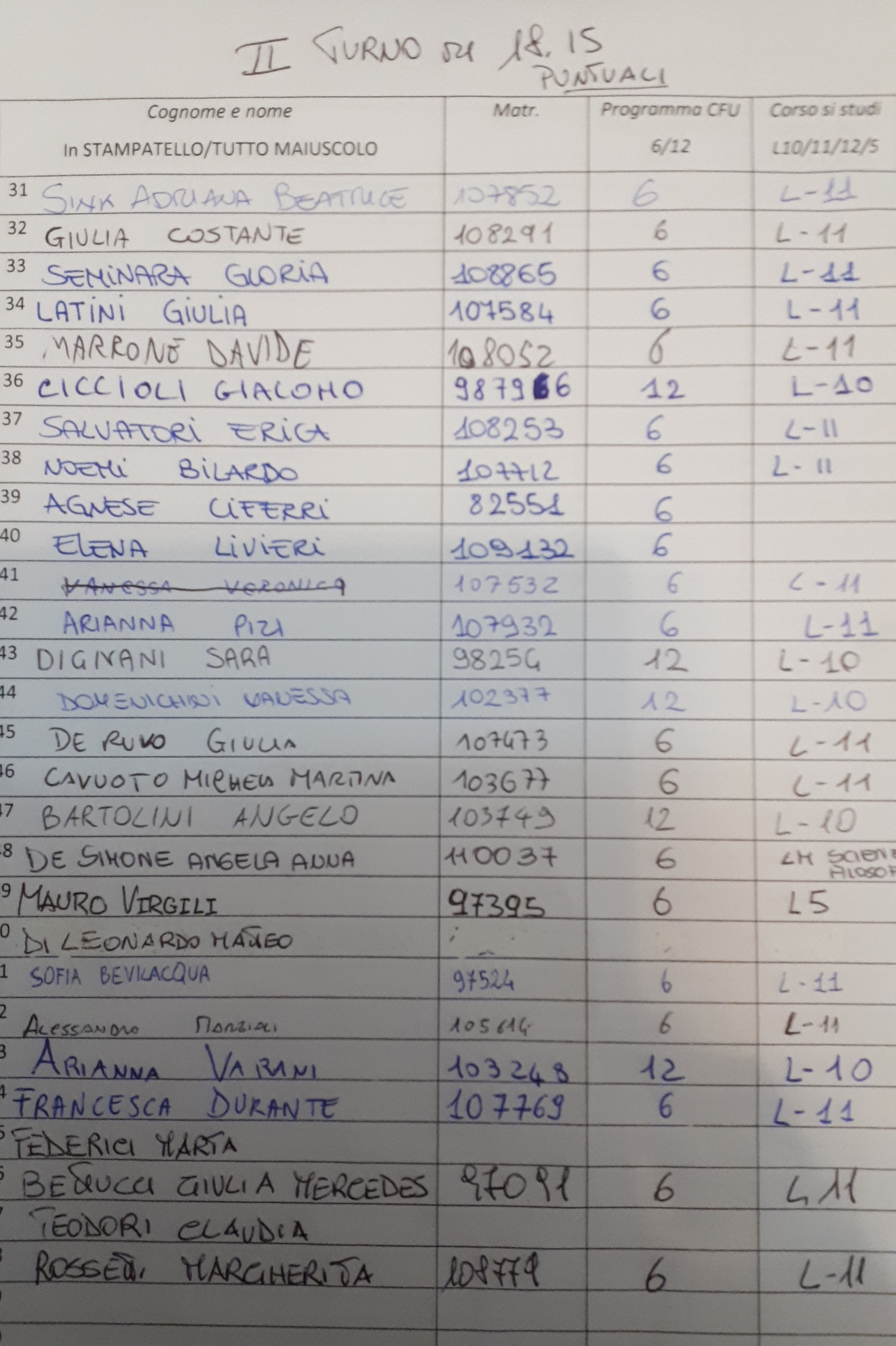 - Classe di laurea L-10, L-5(m), L-11(m)