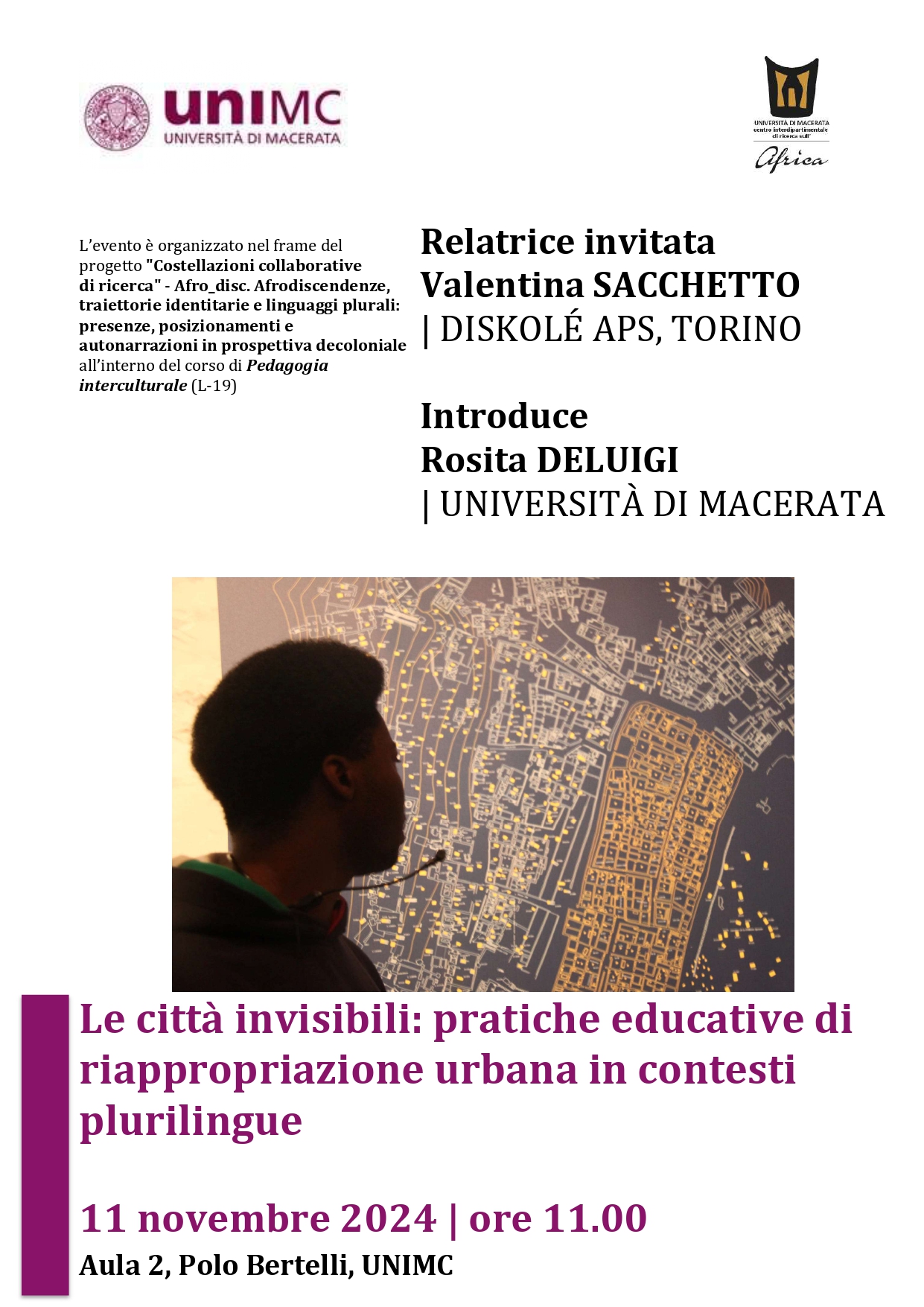 L'analisi di snodi e tematiche attuali, di rilevanza locale e globale, incrementerà il ragionamento sull'approccio interculturale, tracciando piste di riflessione utili alla professionalizzazione degli educatori e delle educatrici.